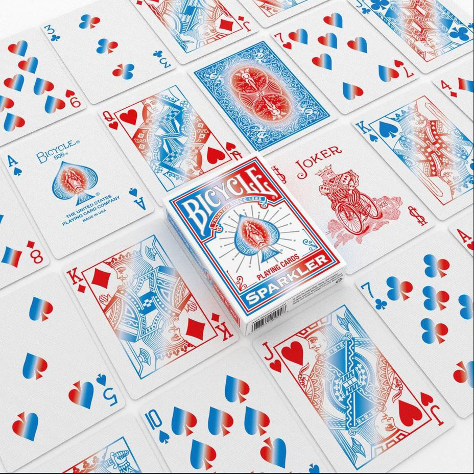 Descubre la baraja Bicycle Sparkler, una baraja premium vibrante y brillante que rinde homenaje a Estados Unidos con un diseño de fuegos artificiales en rojo, blanco y azul. Inspirada en las celebraciones nacionales (incluido el 250 aniversario de Estados Unidos), esta baraja aporta un toque festivo, brillante y enérgico a cada noche de juegos.