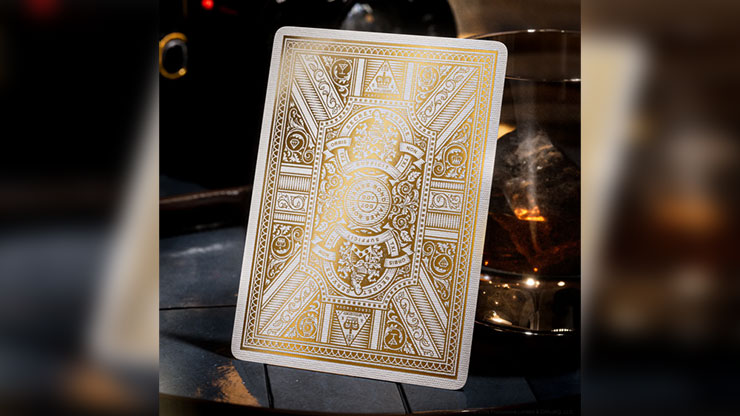Une fois le compartiment dissimulé révélé, trois jeux de cartes 007 Édition Or apparaissent. Chaque jeu est orné d’une dorure à chaud noire et dorée, aussi bien sur le dos que sur les faces, pour un rendu luxueux et spectaculaire.
